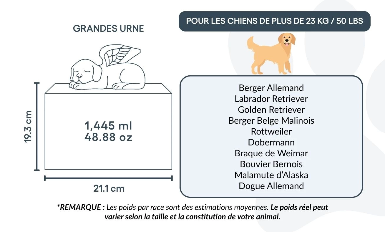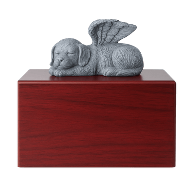 Personalised Wooden Dog Urn Box with Angel Dog Statue – Pet Cremation Urn for Ashes with Photo, Name, Dates & Tribute