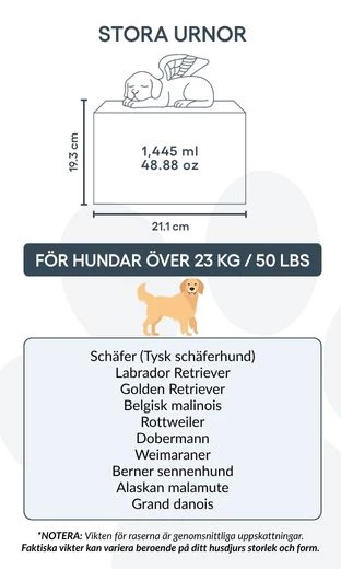Personlig träurna för hund med graverat namn, datum och oändlighetshjärta med tass. En varm och omtänksam minnesurna för att hedra din hund.