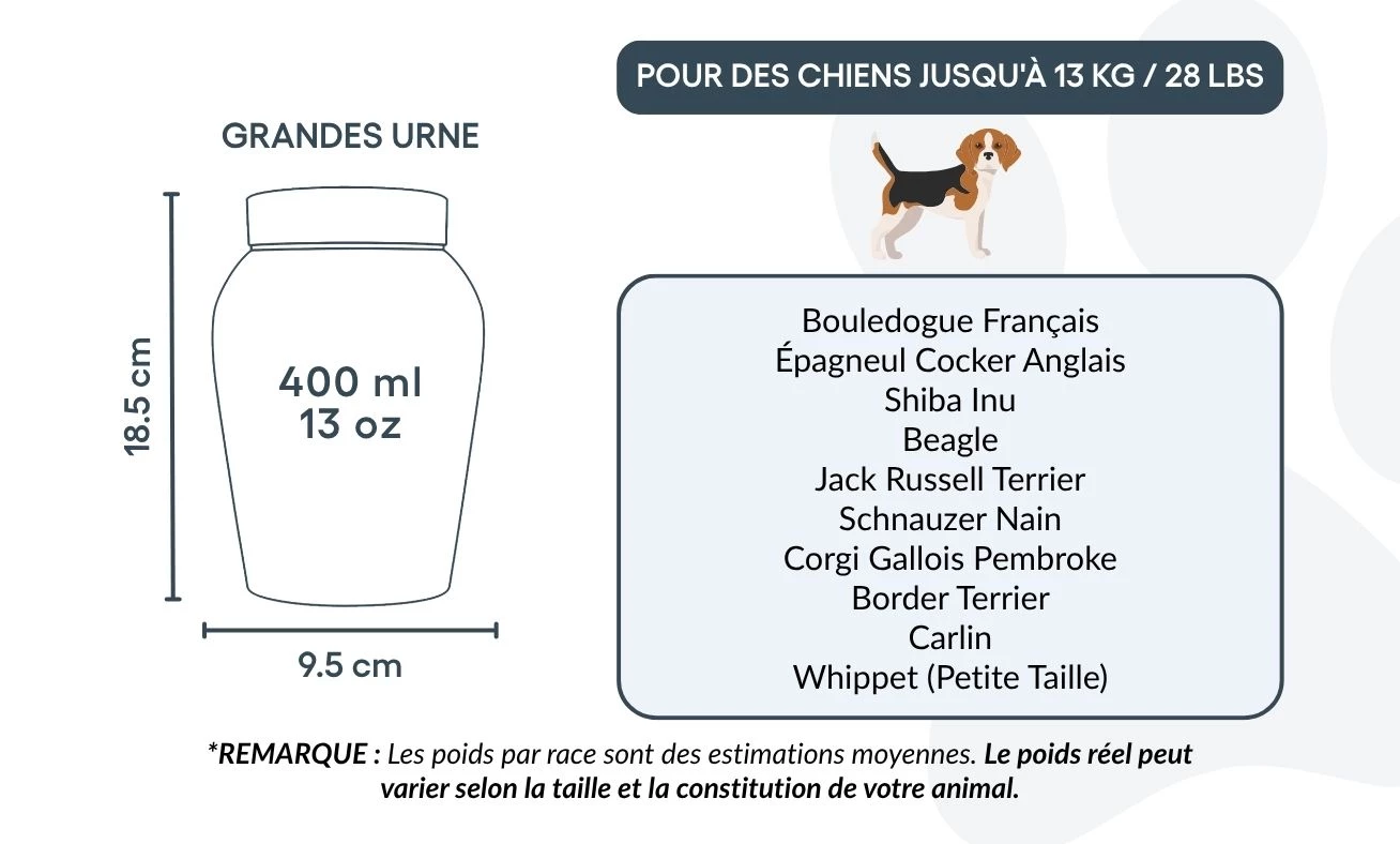 Perfekt för husdjurskremering och minnesstunder – denna minnesurna är mer än en behållare; den är en personlig hyllning till den kärlek, lojalitet och glädje din hund förde in i ditt liv.