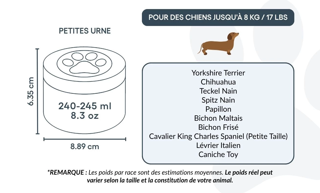 För dig som vill bevara en del av askan från en större hund – för att dela med familjen, skapa flera minnesföremål eller kombinera med andra minnen – är denna urna också ett meningsfullt val. Den låter dig hålla en del av din hund nära, på det sätt som känns rätt för dig.