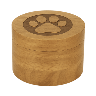 Skapa ett varaktigt minne av din älskade följeslagare med denna Personliga Träurna för Hund med Oändlighetshjärta och Tassmotiv, vackert utformad för att bevara askan med värdighet. Med ett fint graverat oändlighetshjärta och tassmotiv erbjuder denna träurna ett hjärtligt sätt att hedra din hunds liv.