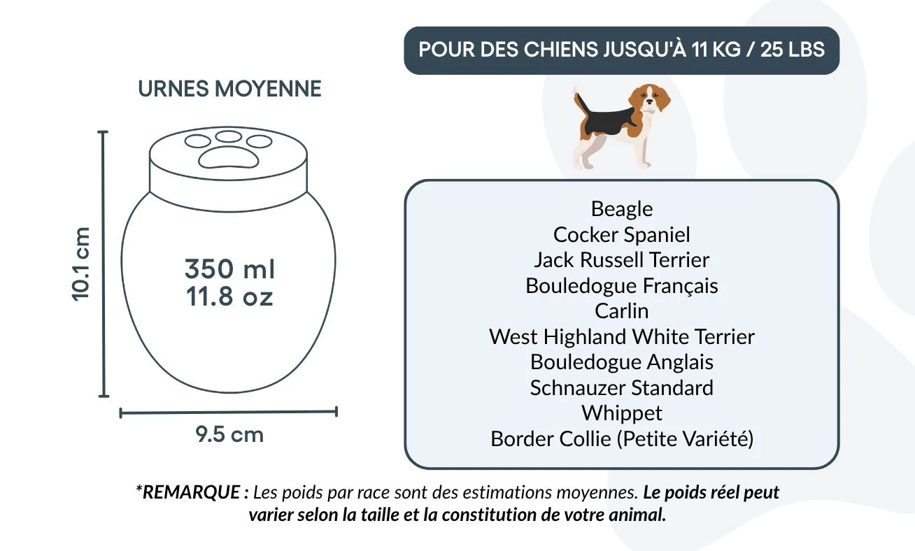 Finns i flera storlekar som passar hundar av olika raser – denna foto-urna är perfekt för kremering och minnesstunder i hemmet.