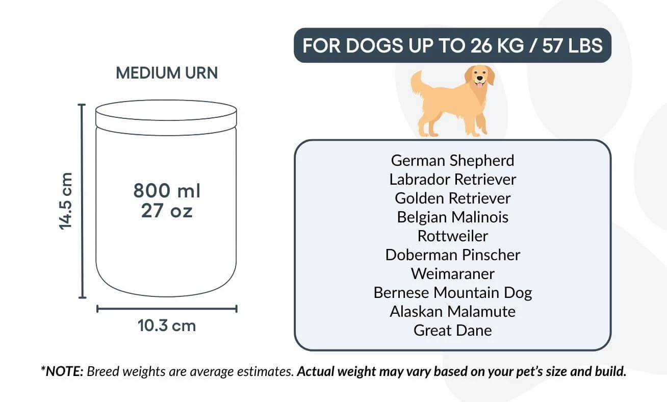 Med fulla anpassningsmöjligheter kan du utforma denna foto-urna för att spegla din hunds historia – en personlig detalj i ditt hem och en varaktig symbol för ert band.