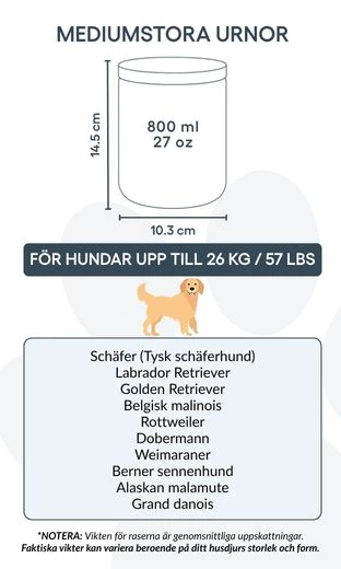🤍 Finns i Small (8,8 oz) och Medium (27 oz) – för hundar upp till 26 kg / 57 lbs