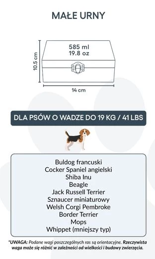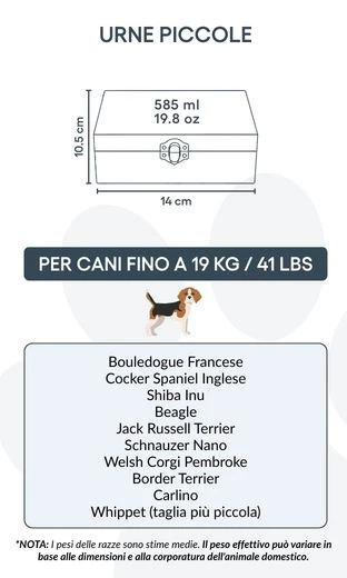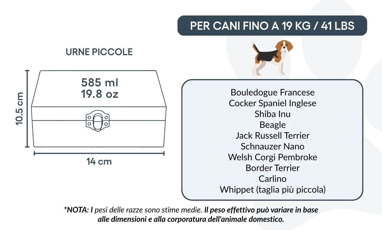Perfekt för små hundar eller en del av askan, är denna hundurna ett respektfullt och personligt minnesföremål. Den passar också som en omtänksam gåva till någon som sörjer en älskad följeslagare.