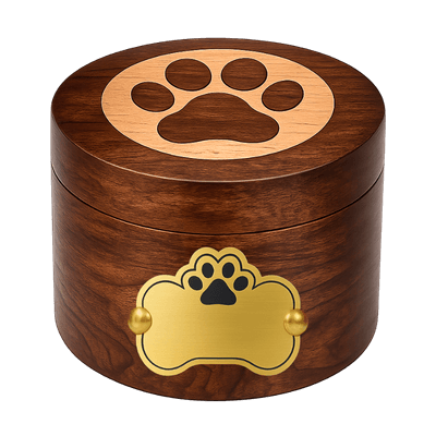 Tillverkad av högkvalitativt trä kombinerar denna hundurna naturlig värme med tidlös enkelhet. Den släta bruna ytan kompletteras av en hållbar aluminiumplatta med personlig gravyr, vilket ger ett stilrent och harmoniskt uttryck. Den passar vackert i alla hem och erbjuder både tröst och ett värdigt sätt att minnas i tider av saknad.
