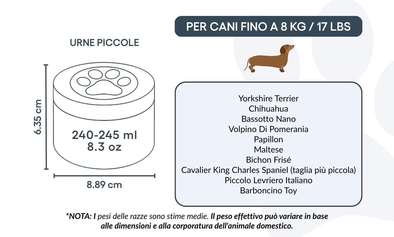 För dig som vill bevara en del av askan från en större hund – för att dela med familjen, skapa flera minnesföremål eller kombinera med andra minnen – är denna urna också ett meningsfullt val. Den låter dig hålla en del av din hund nära, på det sätt som känns rätt för dig.