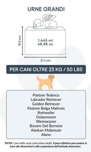 Obs: Volymuppskattningarna baseras på genomsnittliga resultat från husdjurskremering. Vänligen ta hänsyn till ditt husdjurs vikt och kroppsbyggnad vid val av urna.