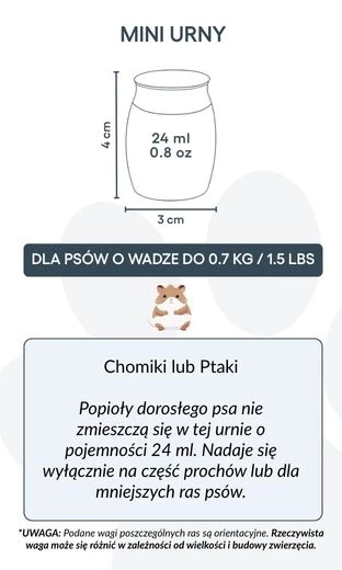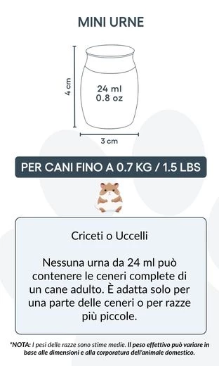 För dem som vill bevara en mindre mängd aska – för att dela med familjen, skapa flera minnessaker eller kombinera med andra minnen – är denna urna ett meningsfullt och respektfullt val. Den gör det möjligt att behålla en del av din hund nära dig, på det sätt som känns rätt för dig.