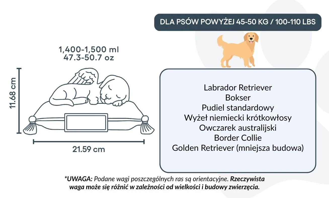 Bevara minnet av din älskade följeslagare med denna Sovande Ängelhund-urna med Kursivt Namn och Datum – ett vackert och känslofyllt sätt att bevara askan och minnet av ditt husdjur. Denna omsorgsfullt utformade djururna visar en fridfull ängelhund som vilar på en dekorativ kudde – en symbol för evig kärlek och stilla vila.