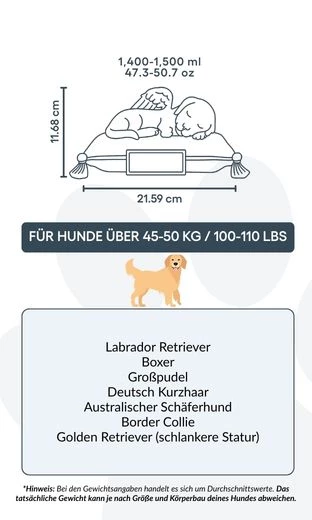 21,59 cm (L) × 19,05 cm (B) × 11,68 cm (H) / 844 g | ~1 400–1 500 ml / 47,3–50,7 oz