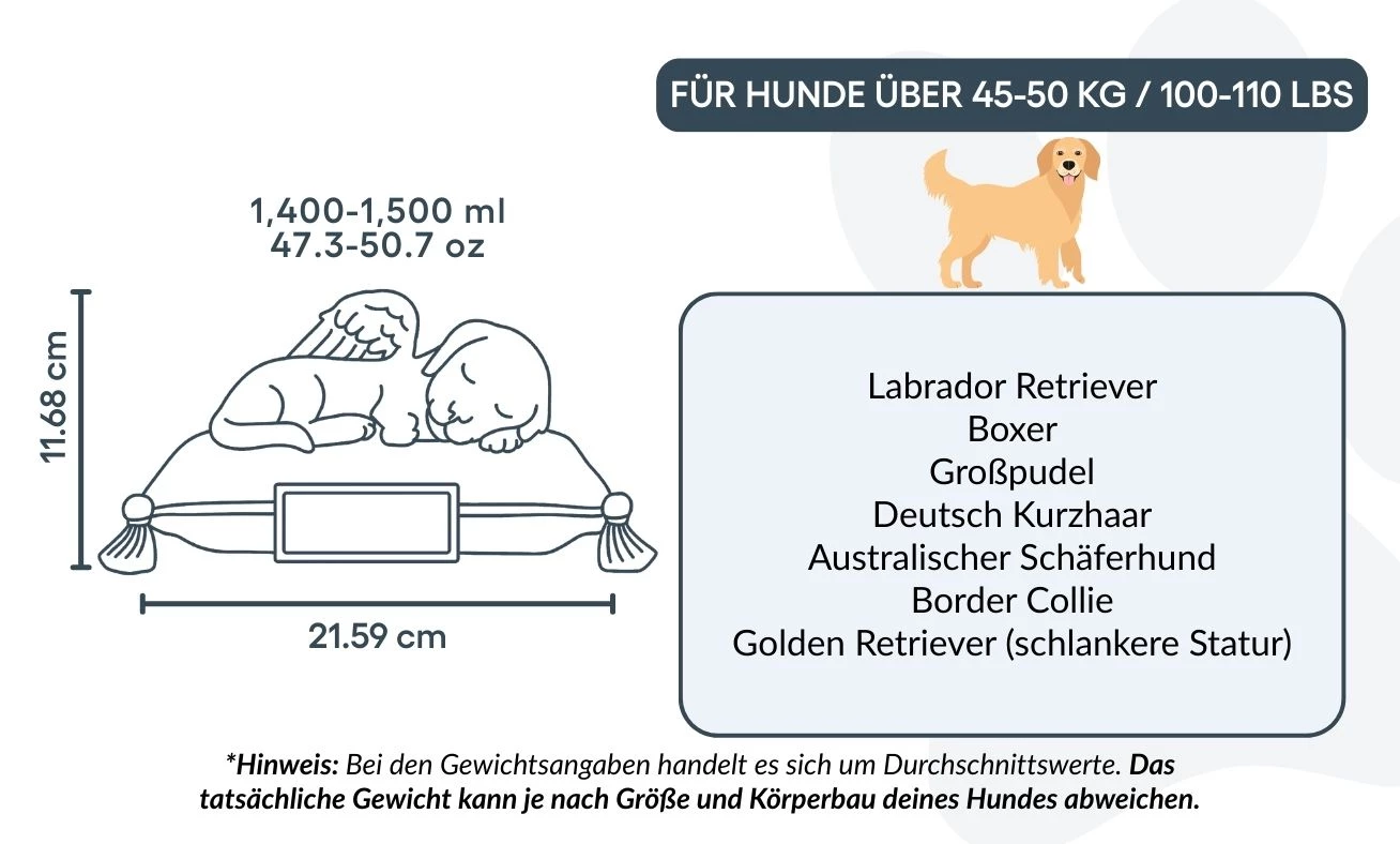 Placera urnan i en lugn trädgårdshörna, vid en gångstig, på altanen eller nära en familjegrav – denna ängelhund-urna erbjuder ett tidlöst minne och en stilla påminnelse om den kärlek som alltid lever kvar.